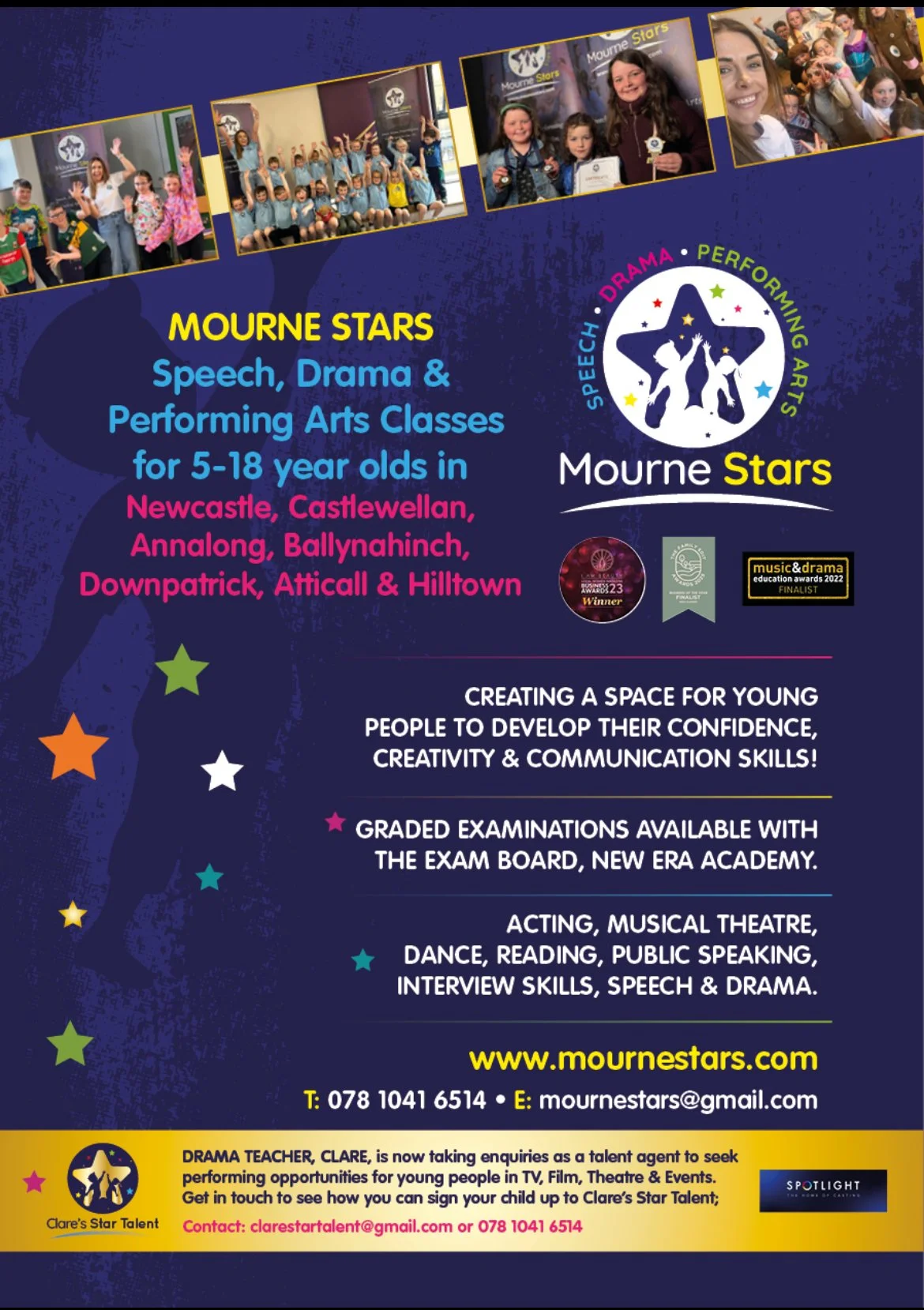 At Mourne Stars Speech & Drama. Our main aim is to instil confidence in children and young people in a fun and enjoyable environment for children aged between 5-18 years old.